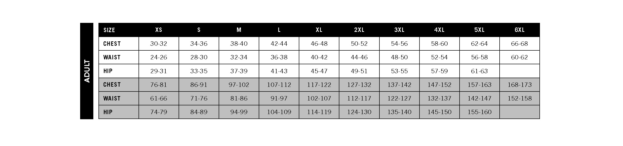 | CHEST (Centimeters) | 86-91 | 97-102 | 107-112 | 117-122 | 127-132 |